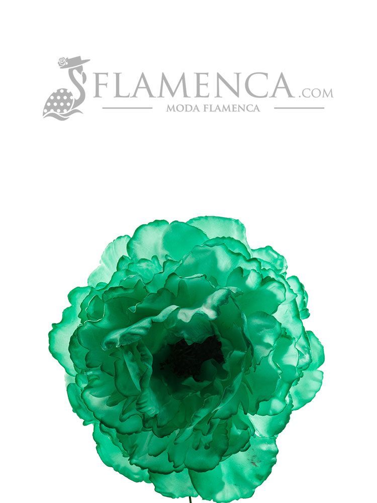 Flamenco flower peony style, large, with an approximate diameter of 14.5 cm and Andalusian green. Handmade in Seville.