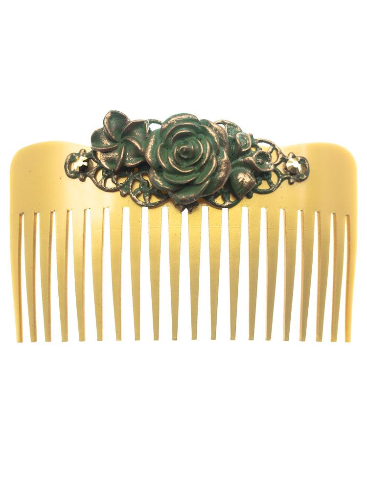 Flamenca comb with a pastel green resin and golden highlights, acetate combs that make it easier to hold the flamenco hair, and with measures of: 90 x 55 mm.