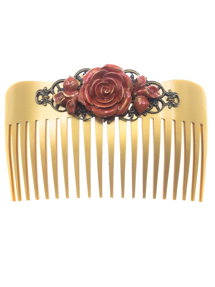 Flamenca comb resin flower and golden reflections, acetate combs that facilitate the grip to the flamenco hair, and measures: 90 x 55 mm.