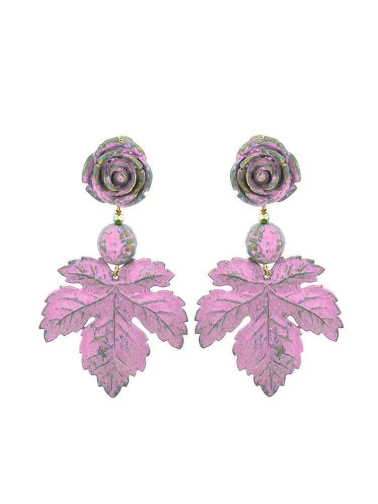 Flamenca earring flower and gum pink leaf with golden highlights, metal fittings, omega clasp. Measures: 60 x 45 mm (without head). Handmade in Seville.
