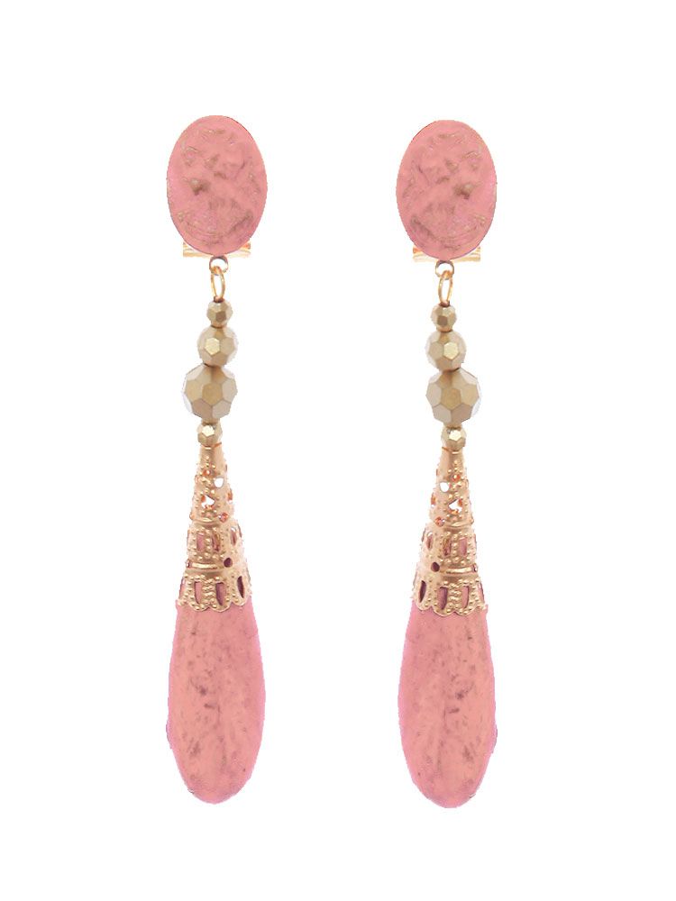 Flamenco cameo earring on its stud, metal fittings, tear-shaped resin termination. Makeup tone with gold highlights. Omega closure.Measures: 75 x 15 mm (without head). Handmade in Seville.