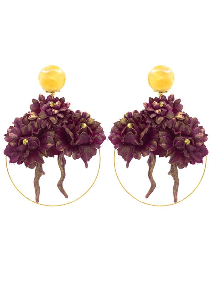Flamenco ring earring with coral detail and bougainvillea fabric fabric