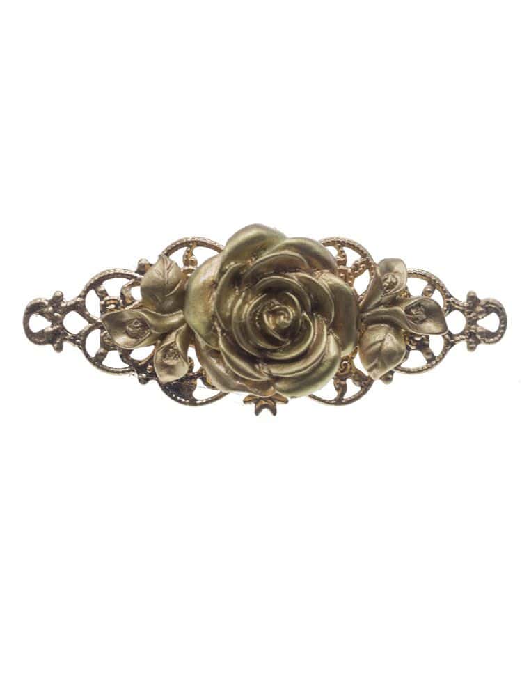 Flamenca brooch of resin flower in gold, with measures of 61 x 23 mm, filigree metal fittings and pin ideal for fastening the shawl to the flamenco dress. The flowers are delicately made by hand with cold resin. Handmade in Seville.