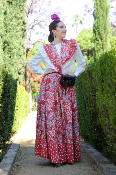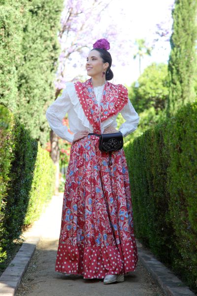 CONJUNTO FALDA+ PIQUILLO ESTAMPADA ROJA