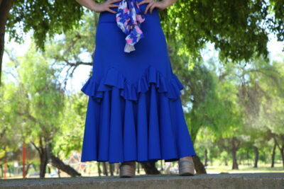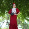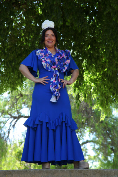 La elasticidad de la tela hace de este traje de flamenca tu mayor aliado en cualquier feria o romería. Junto a nuestros complementos y mantoncillos estarás perfecta.