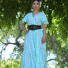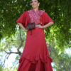 Bata de romería en licra elástica que realza la silueta con comodidad. Diseño mangas adornada con volantes que aportan movimiento.