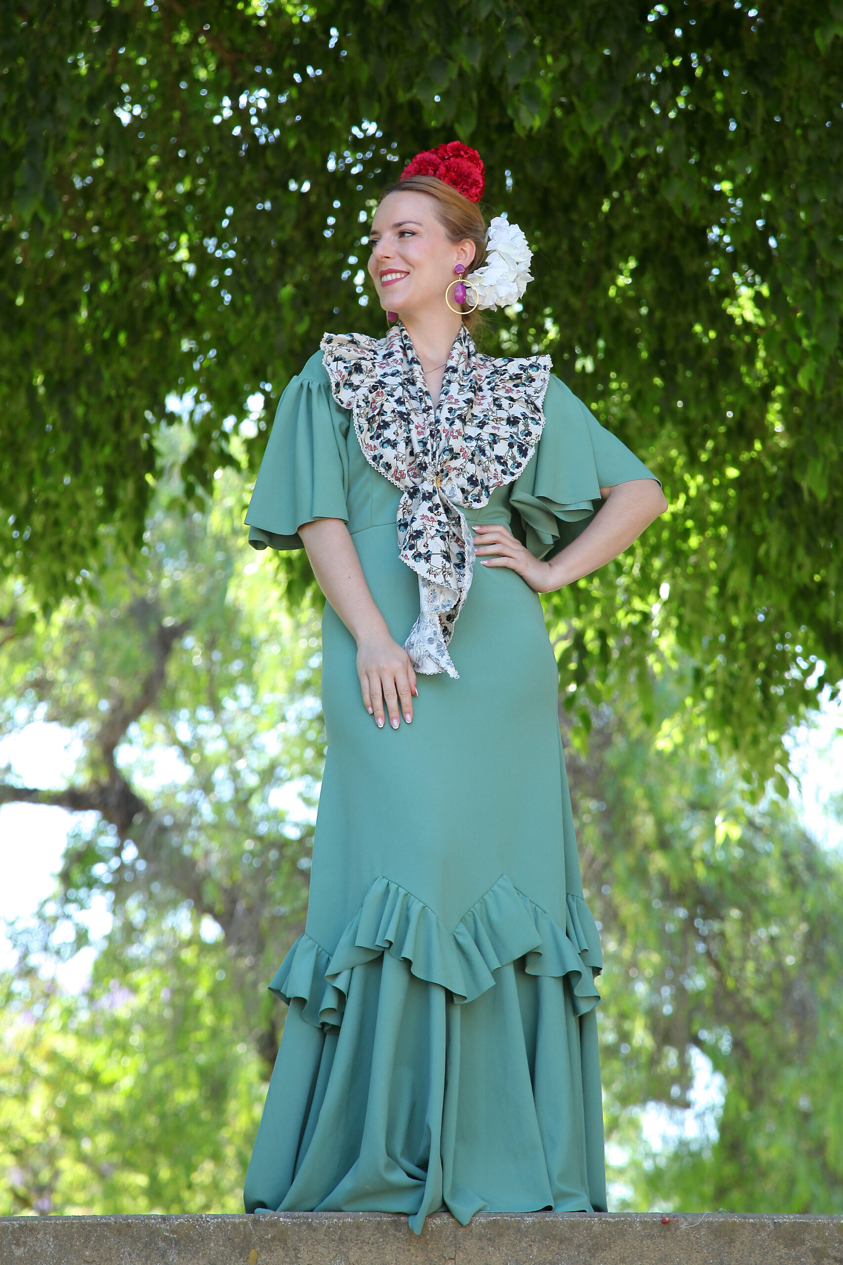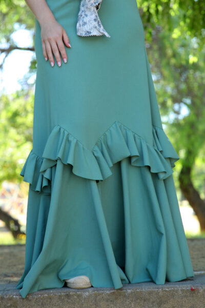 La elasticidad de la tela hace de este traje de flamenca tu mayor aliado en cualquier feria o romería. Junto a nuestros complementos y mantoncillos estarás perfecta.