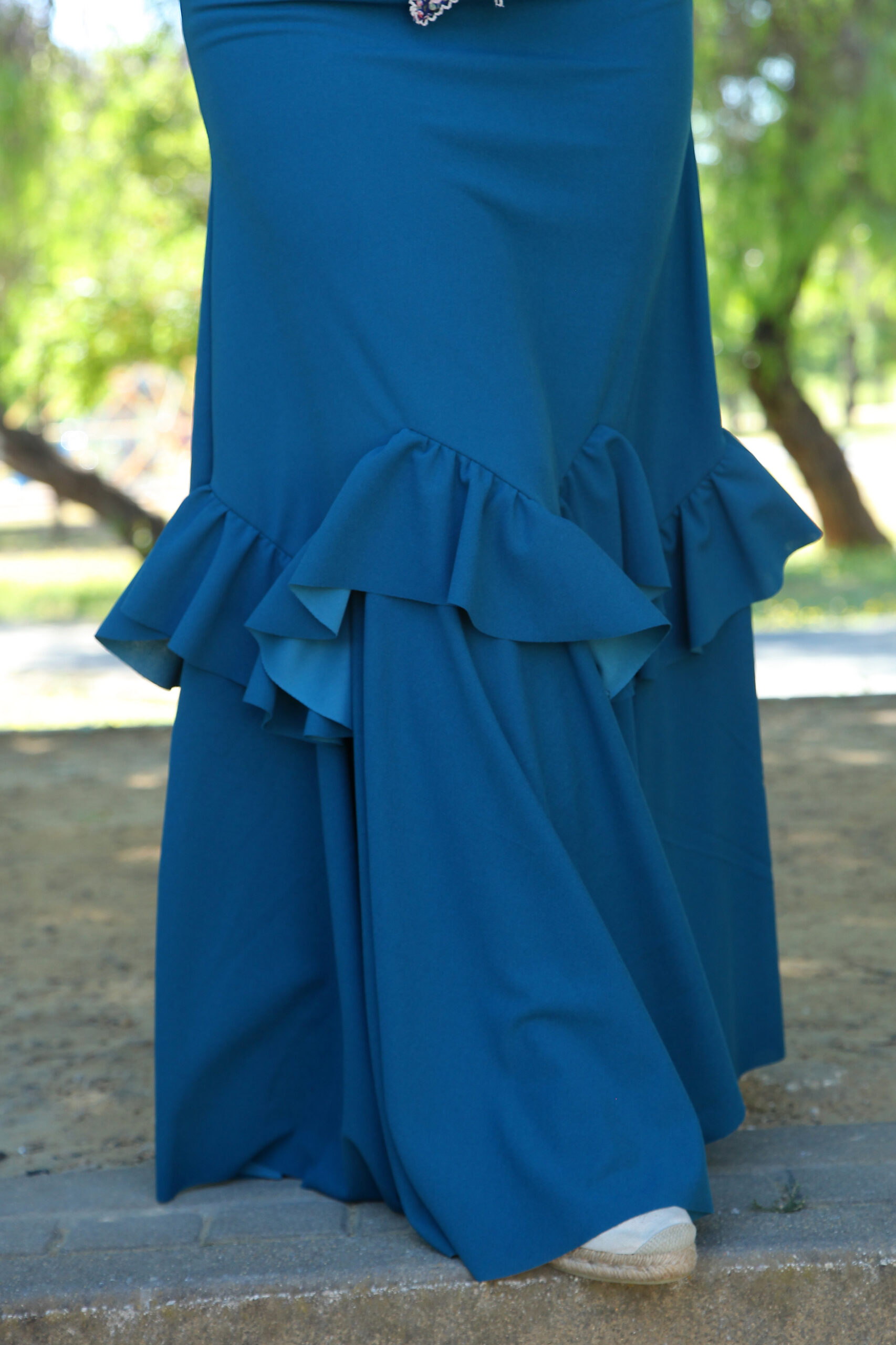 La elasticidad de la tela hace de este traje de flamenca tu mayor aliado en cualquier feria o romería. Junto a nuestros complementos y mantoncillos estarás perfecta.