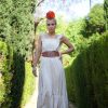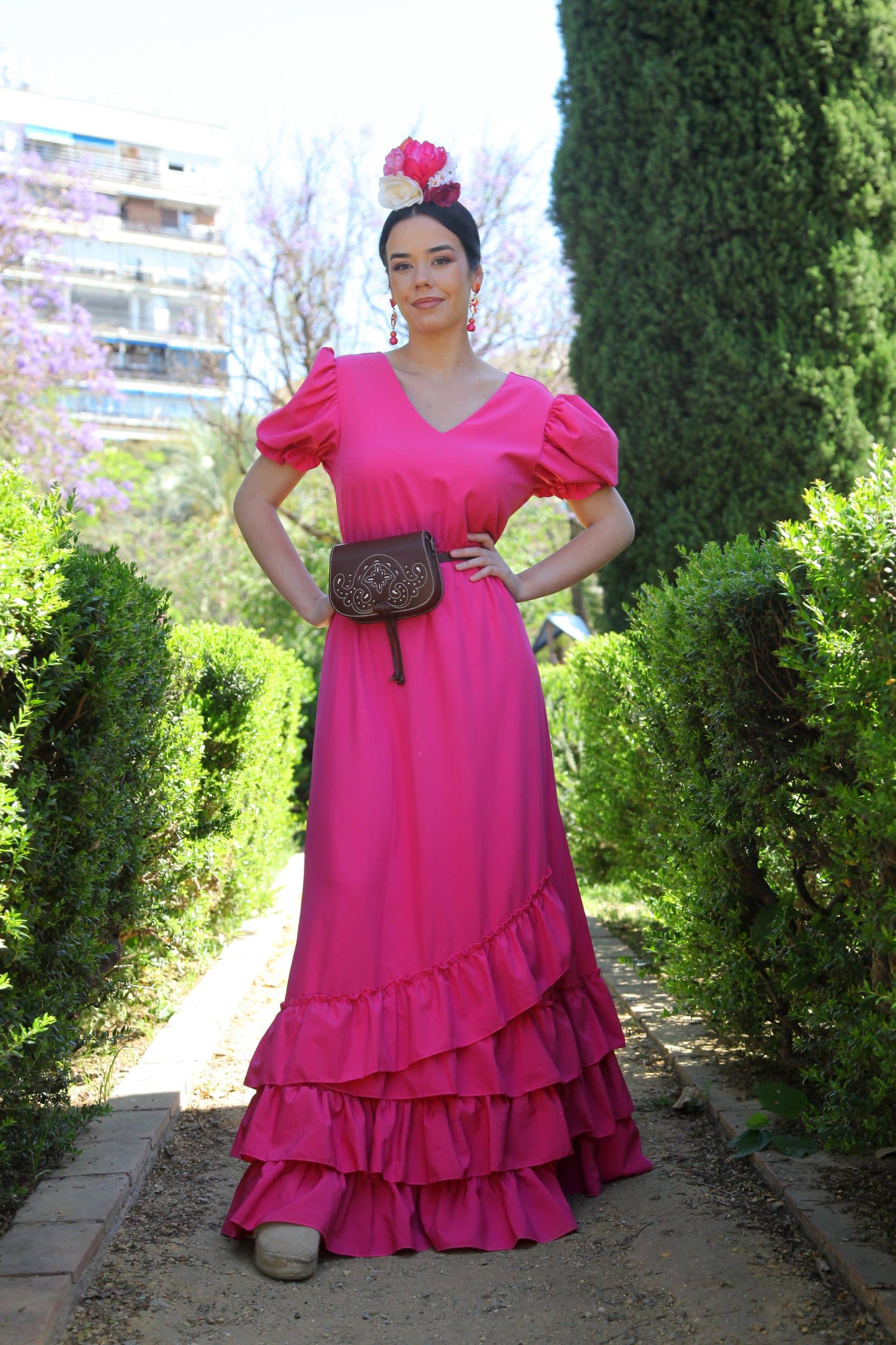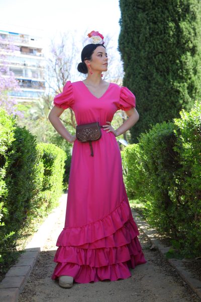 Bata rociera lisa de volantes con media manga abullonada y fruncido en el pecho.