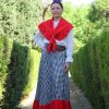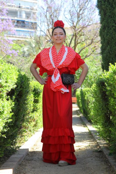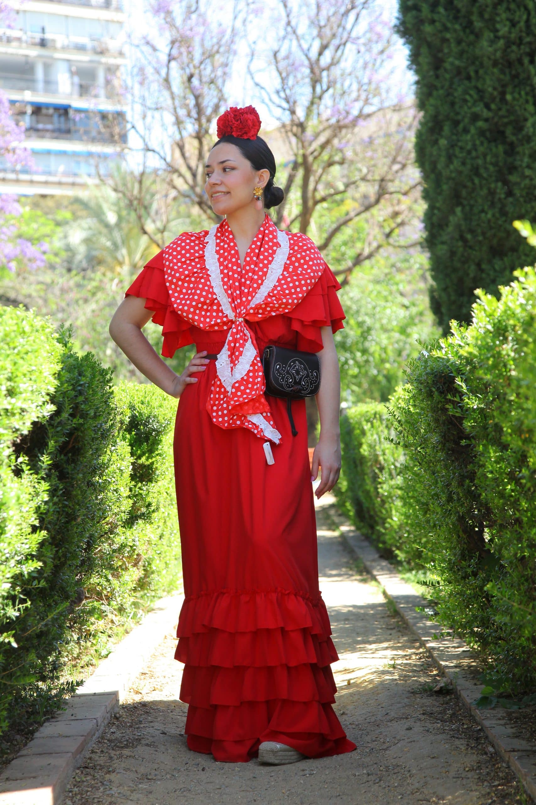 Bata rociera de volantes lisa con fruncido en el pecho con mangas de volantitos y escote en pico.