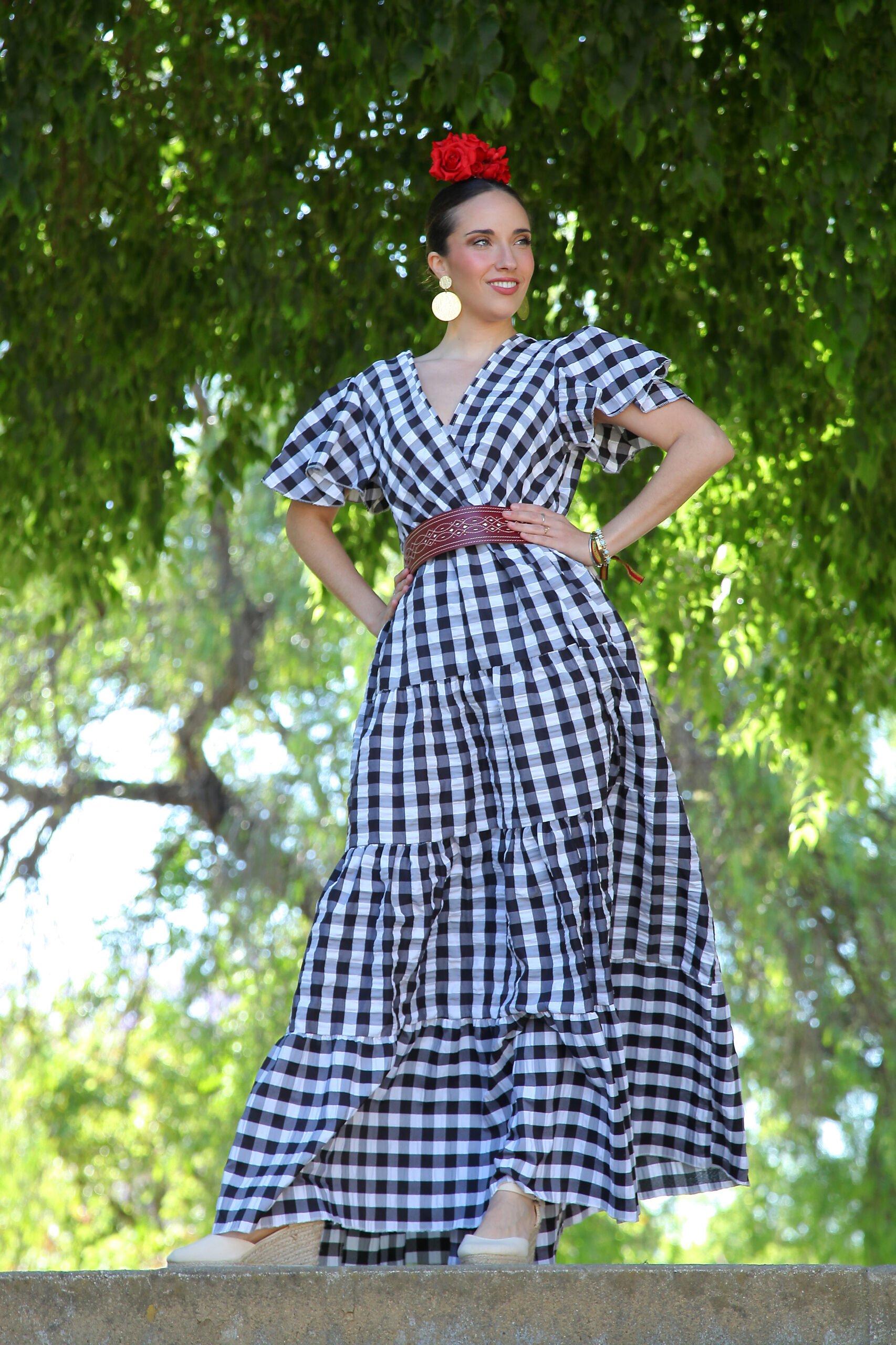 Tiara de flamenca en tonos verdoso, albero y guinda
