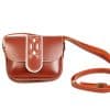 Bolso-bandolera de piel. Fabricado artesanalmente en Ubrique, España. Color Engrasado terminaciones picadas en fondo Blanco, con solapa, cierre de cordón, y posible uso de bolso- cinturón tipo riñonera.