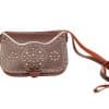 Bolso-bandolera rociero de piel color Cuero con fondo Blanco Coria