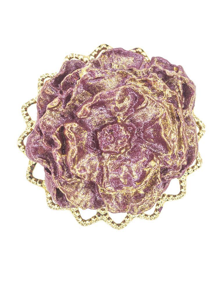 Broche de flamenca de porcelana, en color burdeos con reflejos dorados, con medidas: 37 x 35 mm, fornitura metálica de filigrana y alfiler ideal para la sujeción del mantoncillo al traje de flamenca. Las flores están elaboradas delicadamente a mano con porcelana fría. Fabricado artesanalmente en Sevilla.