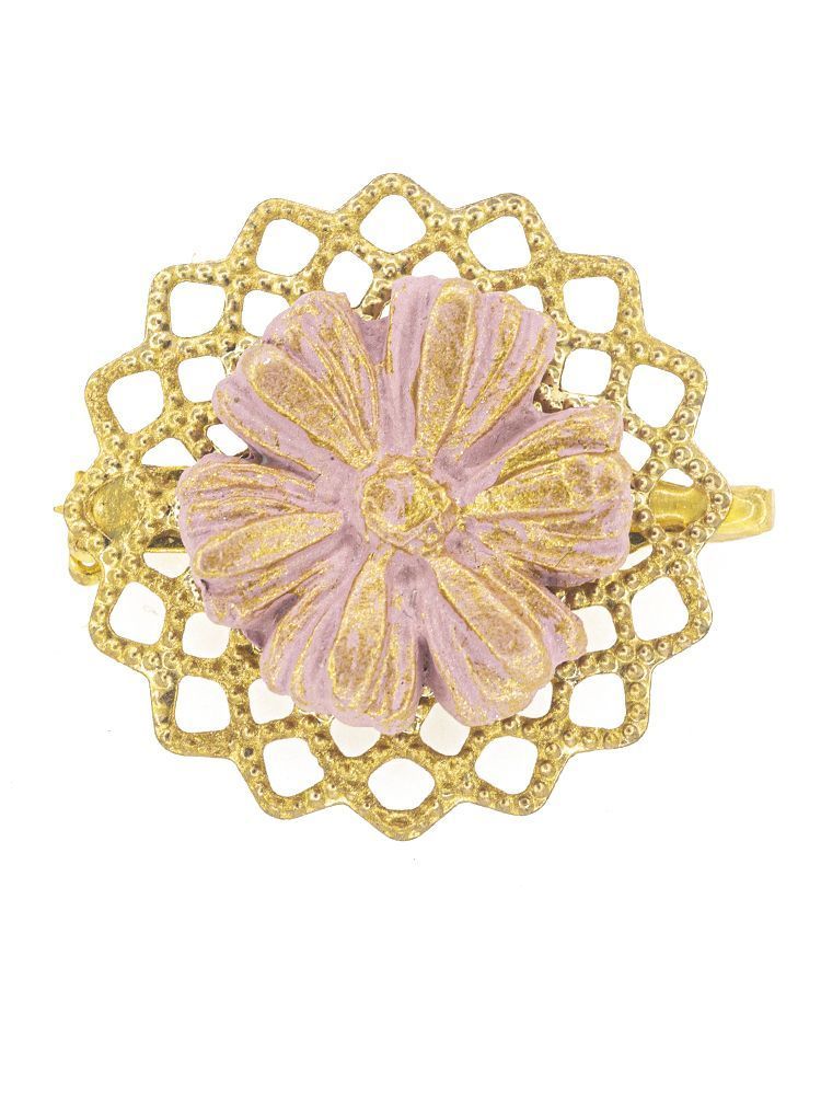 Broche de flamenca de porcelana malva pastel con reflejos dorados