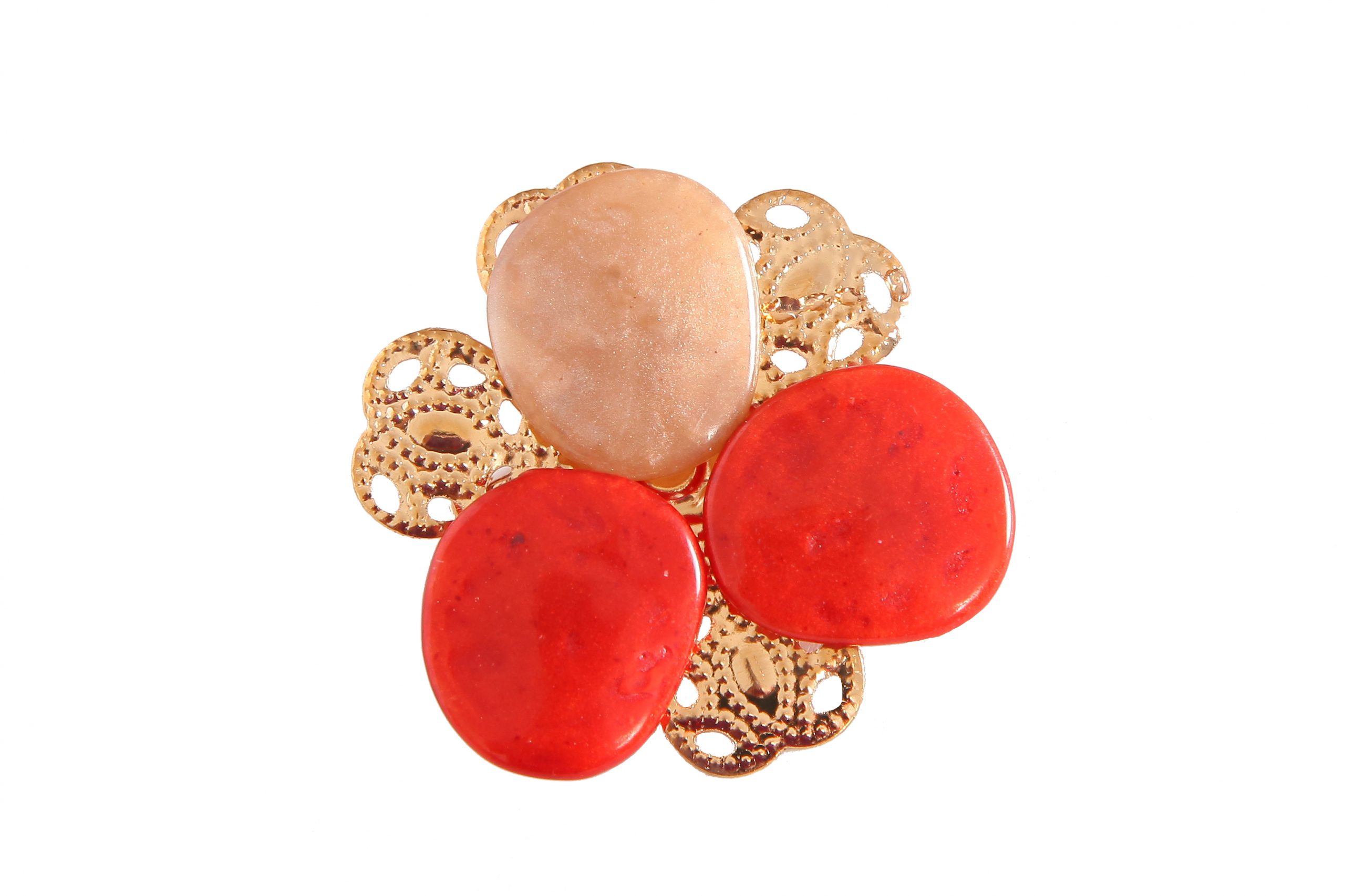 Broche de flamenca flor mediana piedras nácar color coral y beige