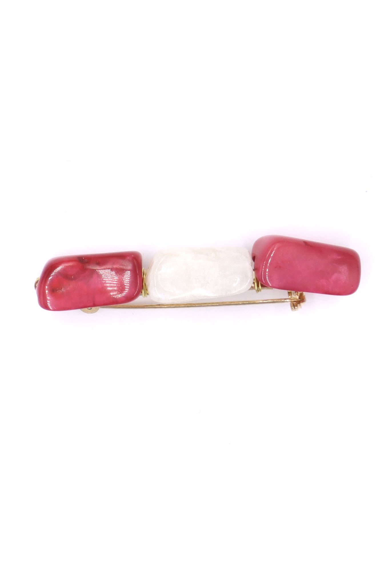 Broche de flamenca mediano piedras nácar color fresa y rosa bebé. Cierre con imperdible. Medida 55×15 mm. Fabricado artesanalmente en la provincia de Sevilla.