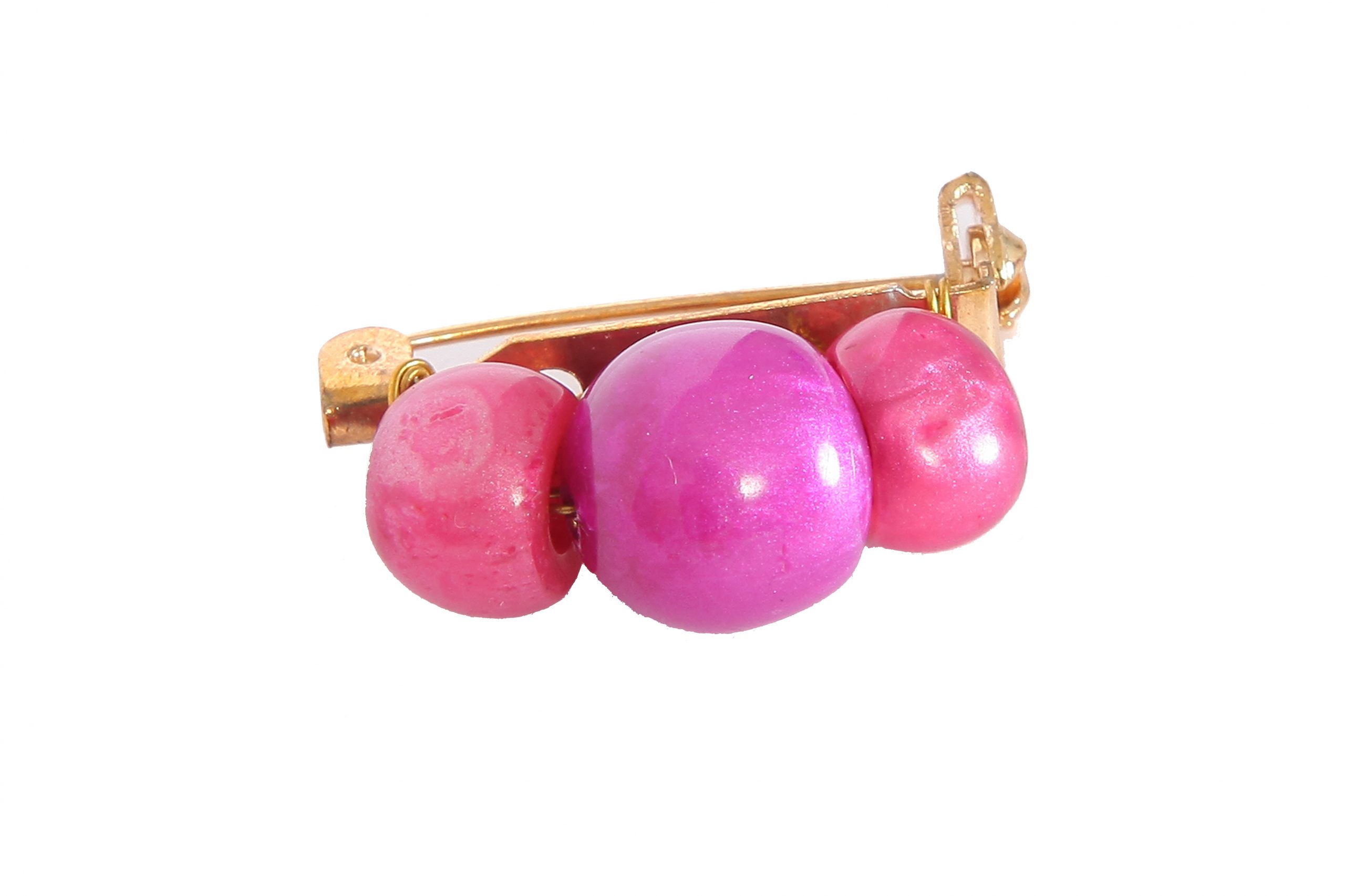 Broche de flamenca pequeño piedras nácar color buganvilla y morado. Medida 25×12 mm. Cierre mediante imperdible. Fabricado artesanalmente en la provincia de Sevilla.