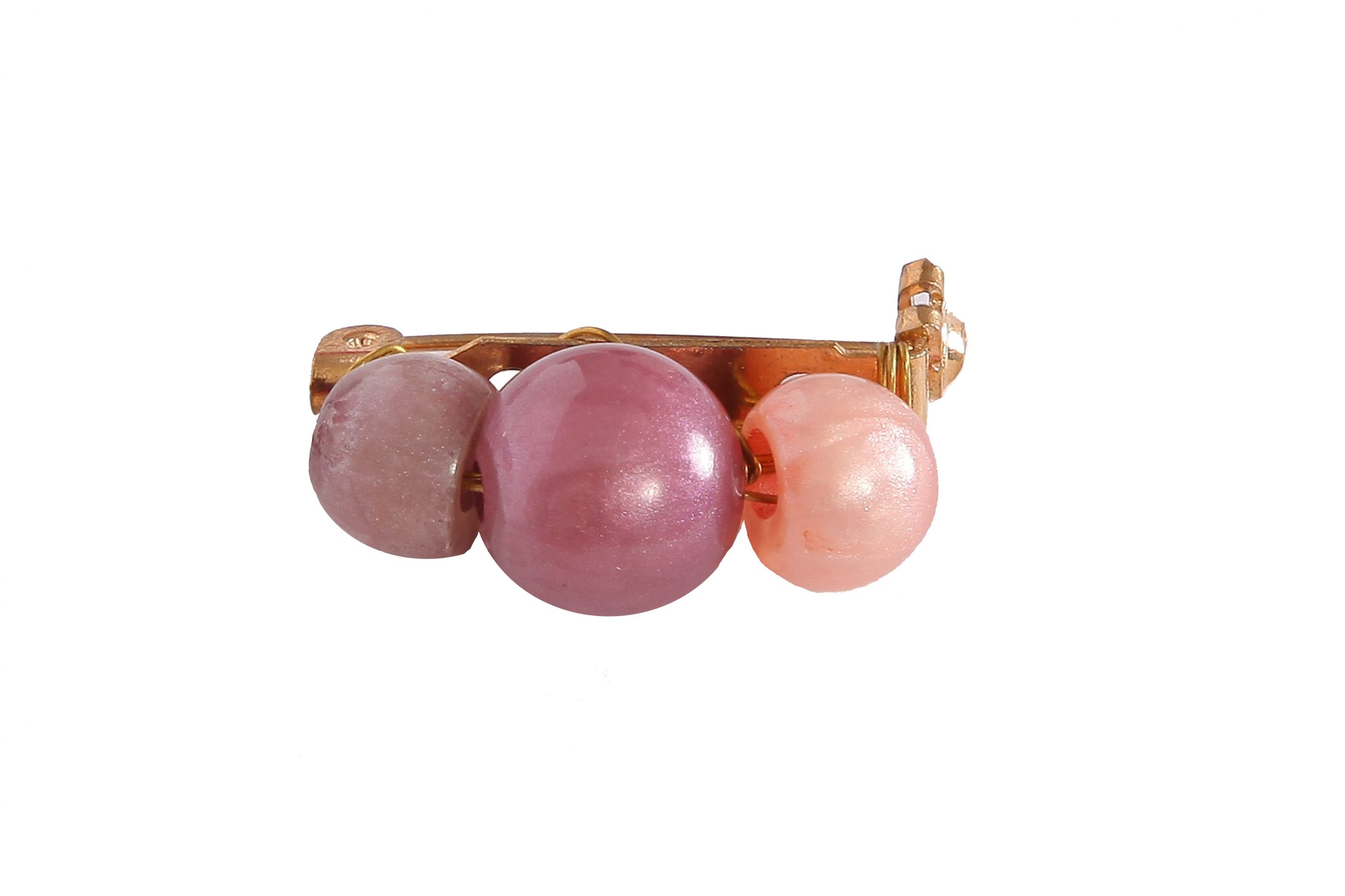 Broche de flamenca pequeño piedras nácar color malva y rosa bebé. Medida 25×12 mm. Cierre mediante imperdible. Fabricado artesanalmente en la provincia de Sevilla.