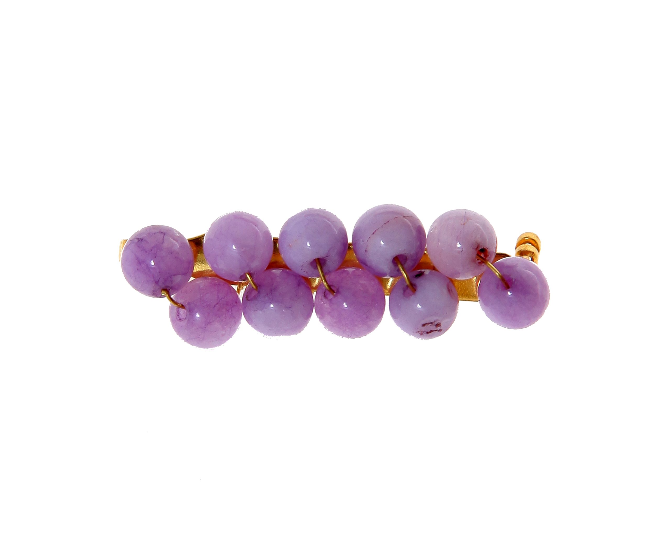 Broche con bolas de piedra Ágata en lila.Medidas aproximadas ancho x largo; 40x15mm. Fabricado artesanalmente en la provincia de Sevilla.