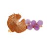 Broche dorado de nenúfar con bolas de piedra Ágata en morado