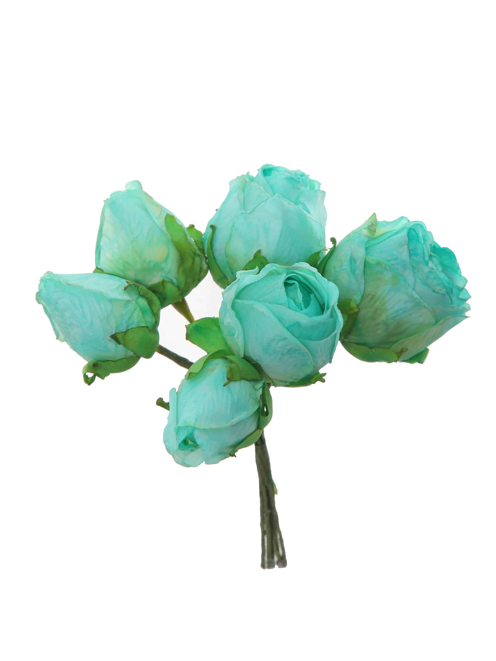 Capullo envejecido de rosas, de tamaño mediano, con un diámetro aproximado de 15 cms y color Aguamarina Pastel. Elaborada artesanalmente en Sevilla.