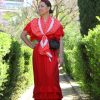 Bata rociera de volantes lisa con fruncido en el pecho con mangas de volantitos y escote en pico.