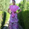 Bata rociera de volantes con estampado de flores y fruncido en el pecho con mangas de volantitos.