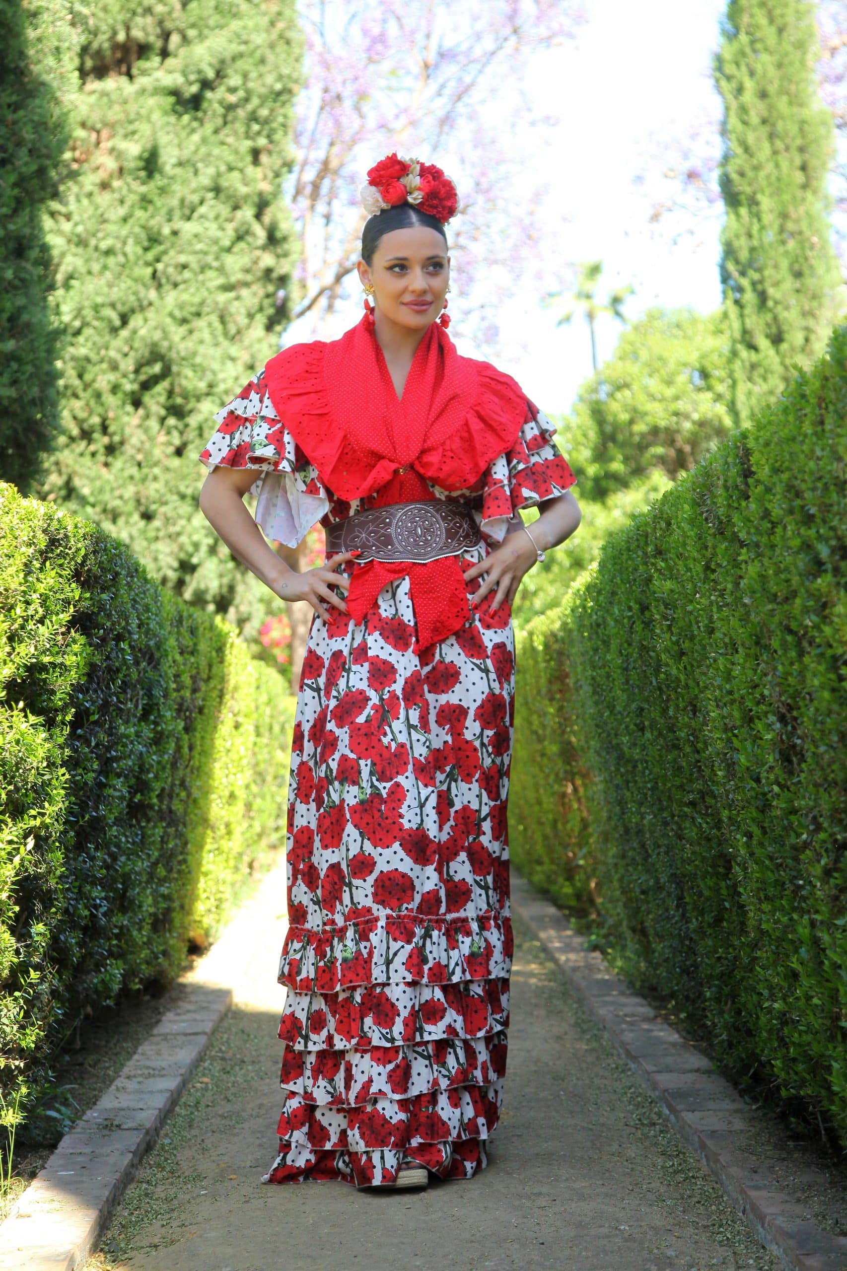Conjunto Bata Rociera Clavel roja estampada con piquillo