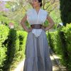 Bata rociera de volantes lisa con fruncido en el pecho con mangas de volantitos y escote en pico.