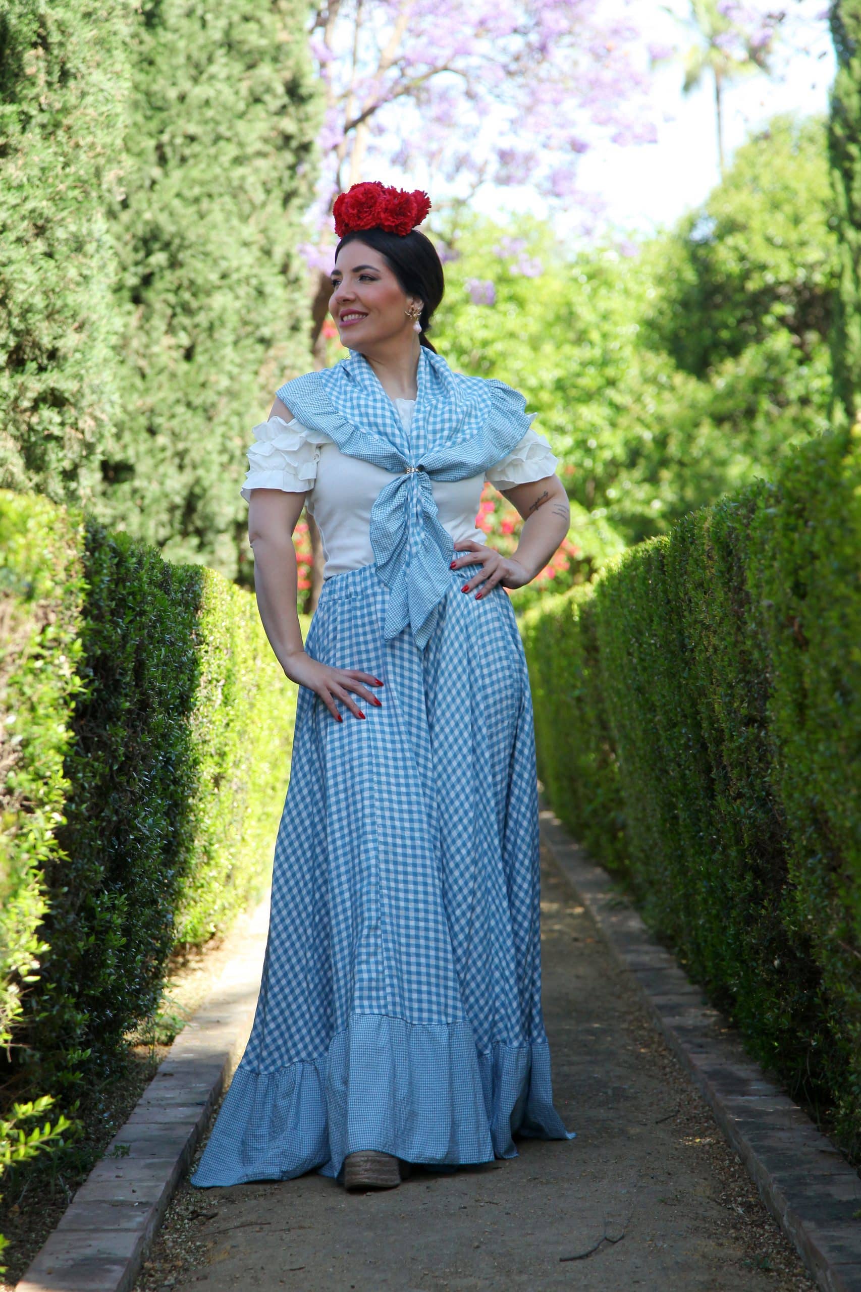 CONJUNTO DE FALDA + PIQUILLO DE VICHY EN CELESTE