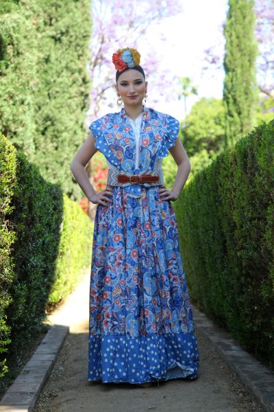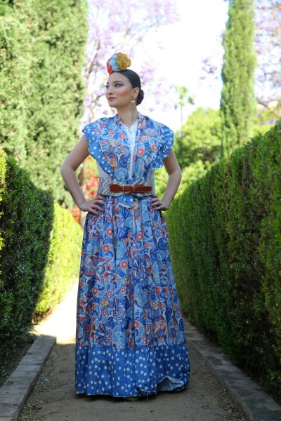 CONJUNTO FALDA+ PIQUILLO ESTAMPADO DE FLORES Y LUNARES AZUL