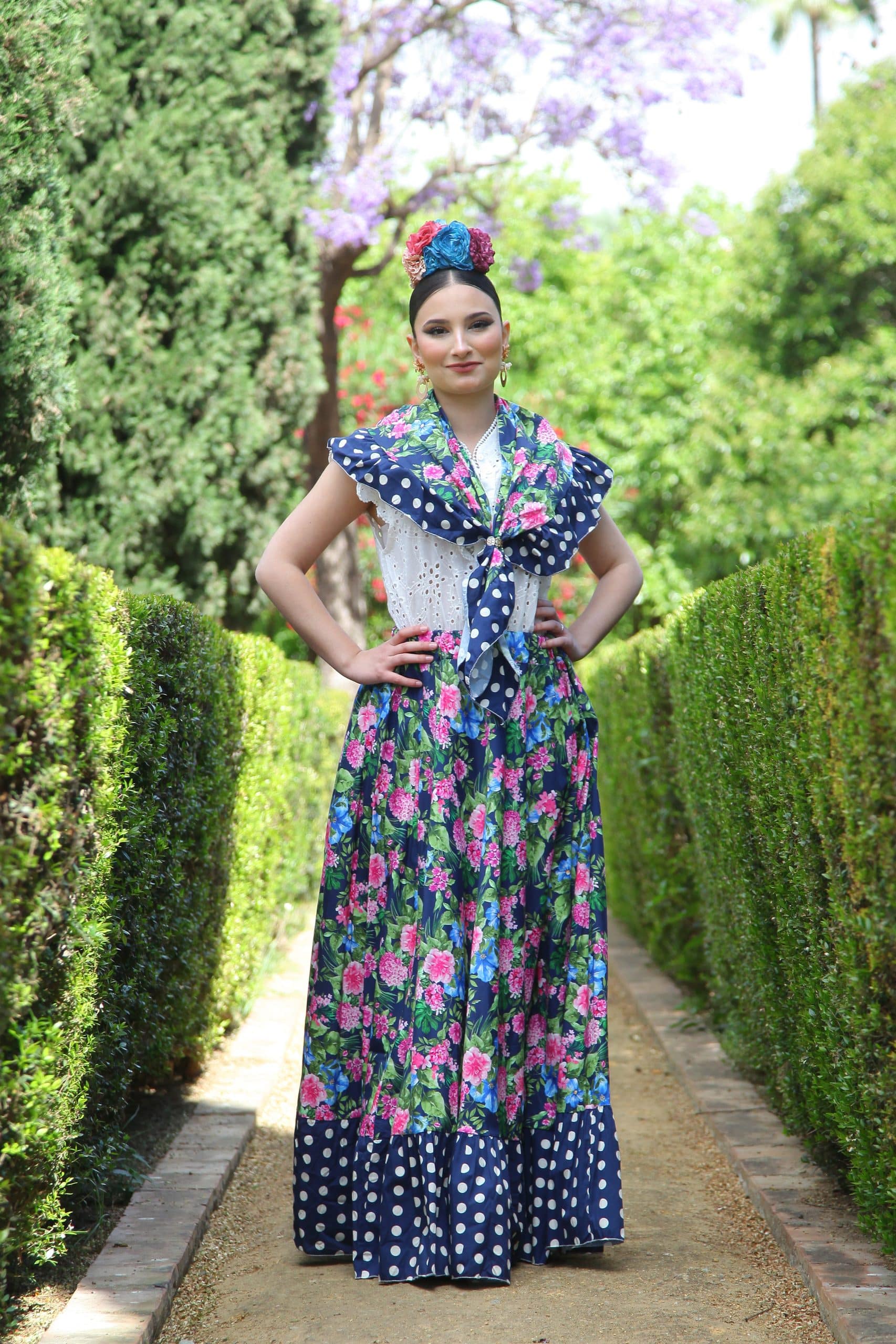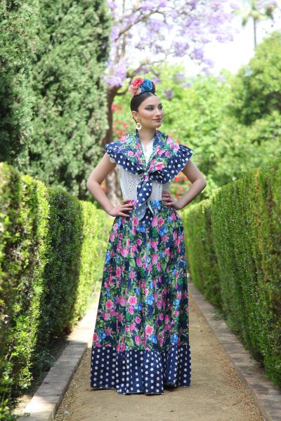 CONJUNTO FALDA+ PIQUILLO ESTAMPADO DE FLORES Y LUNARES AZUL OSCURO