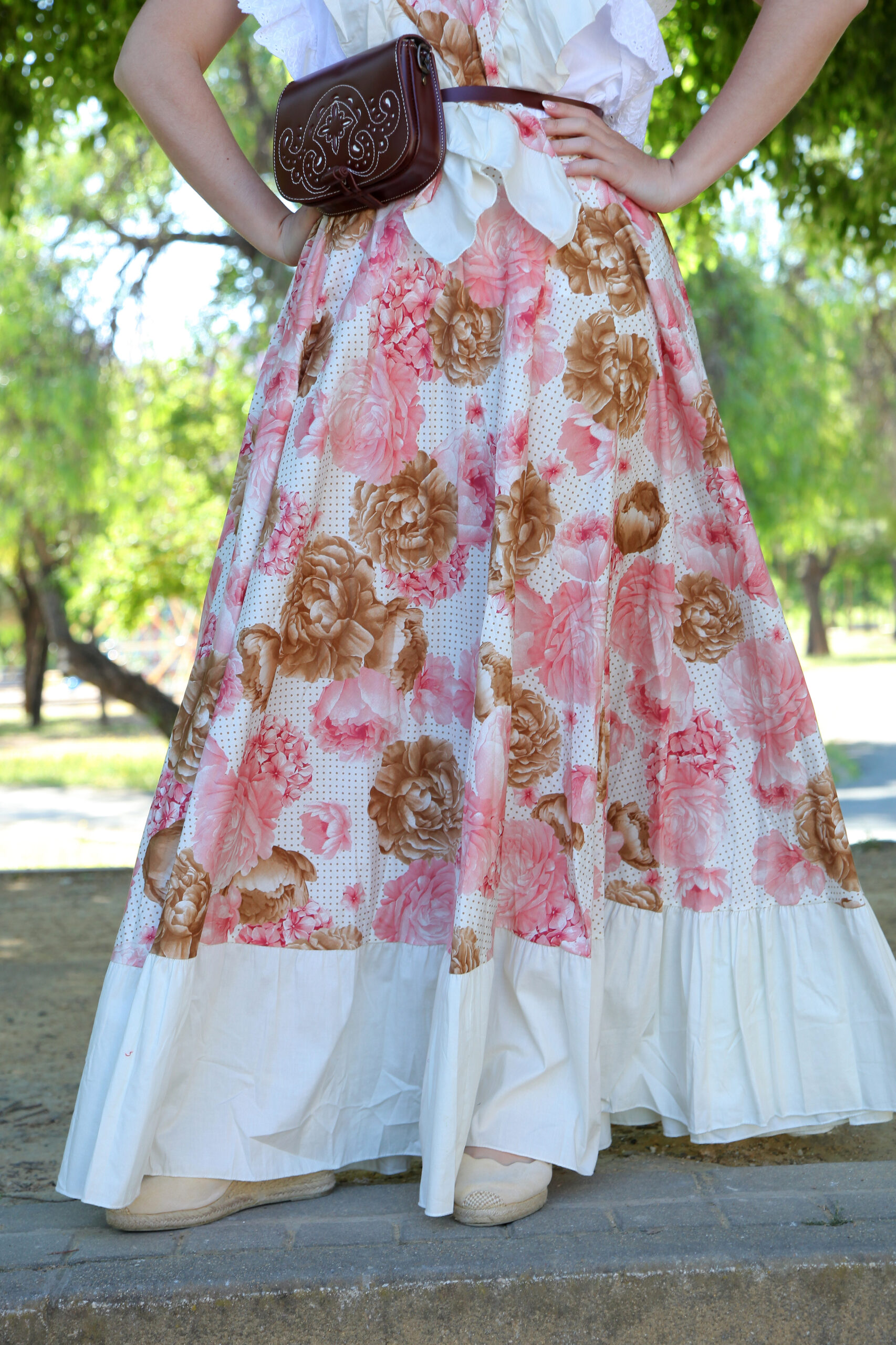 Conjunto de falda estampada más piquillo.