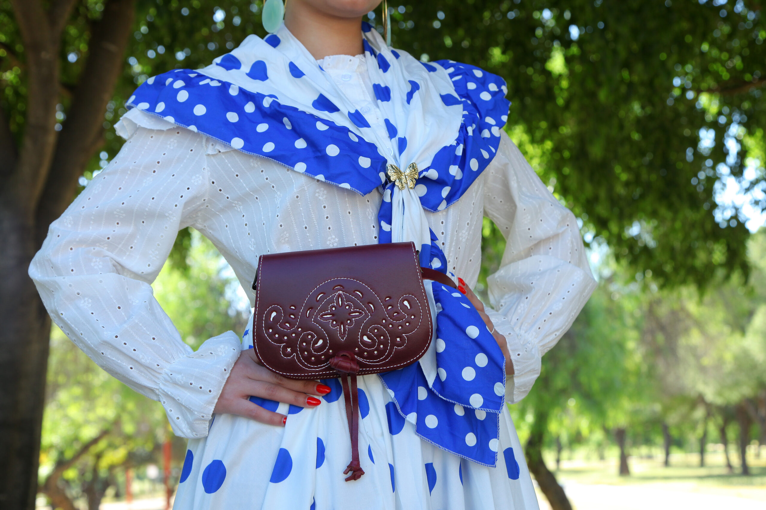 CONJUNTO FALDA + PIQUILLO ESTAMPADO LUNAR AZUL ELÉCTRICO
