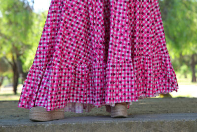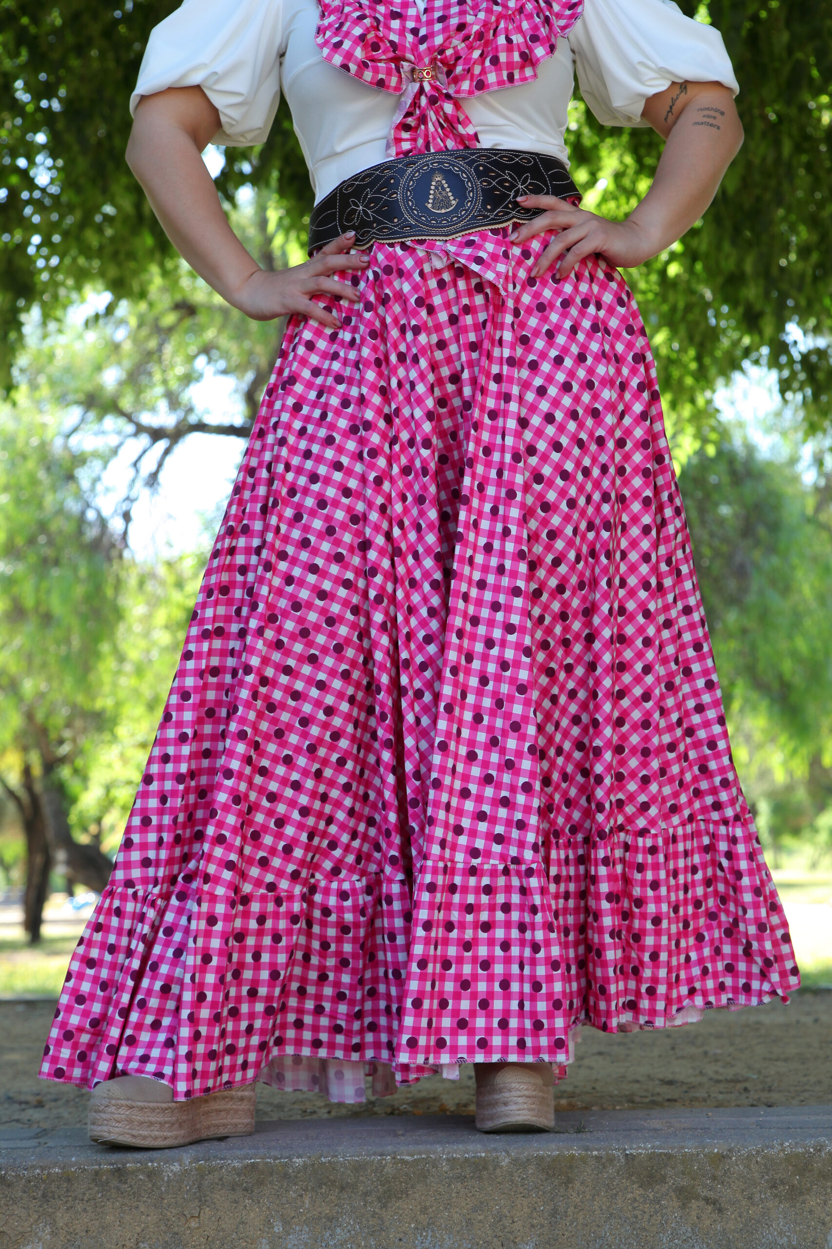 CONJUNTO FALDA + PIQUILLO ESTAMPADO LUNAR ROSA FUCSIA
