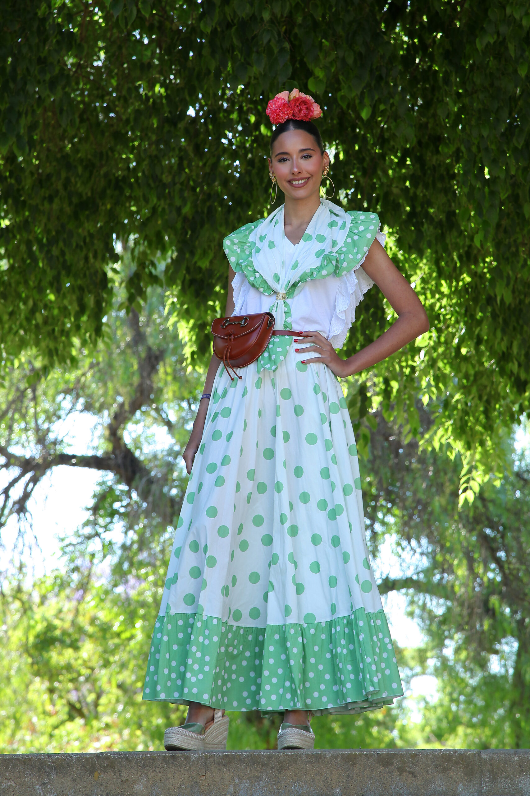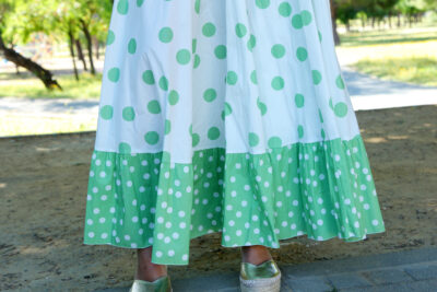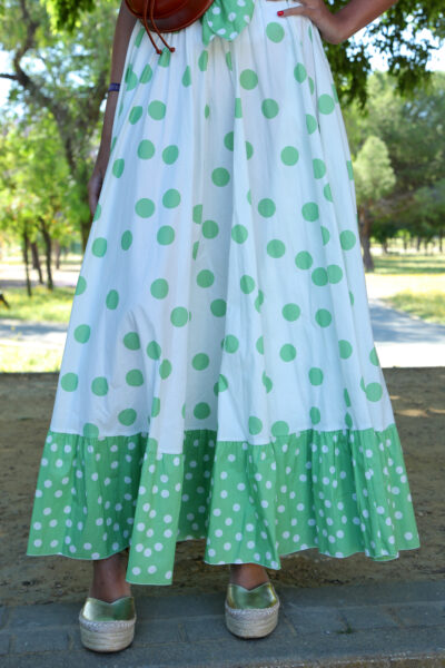CONJUNTO FALDA + PIQUILLO ESTAMPADO LUNAR VERDE MANZANA
