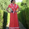 Falda larga blanca de lunares negros y cintura elástica. Ideal para el camino y romerías.