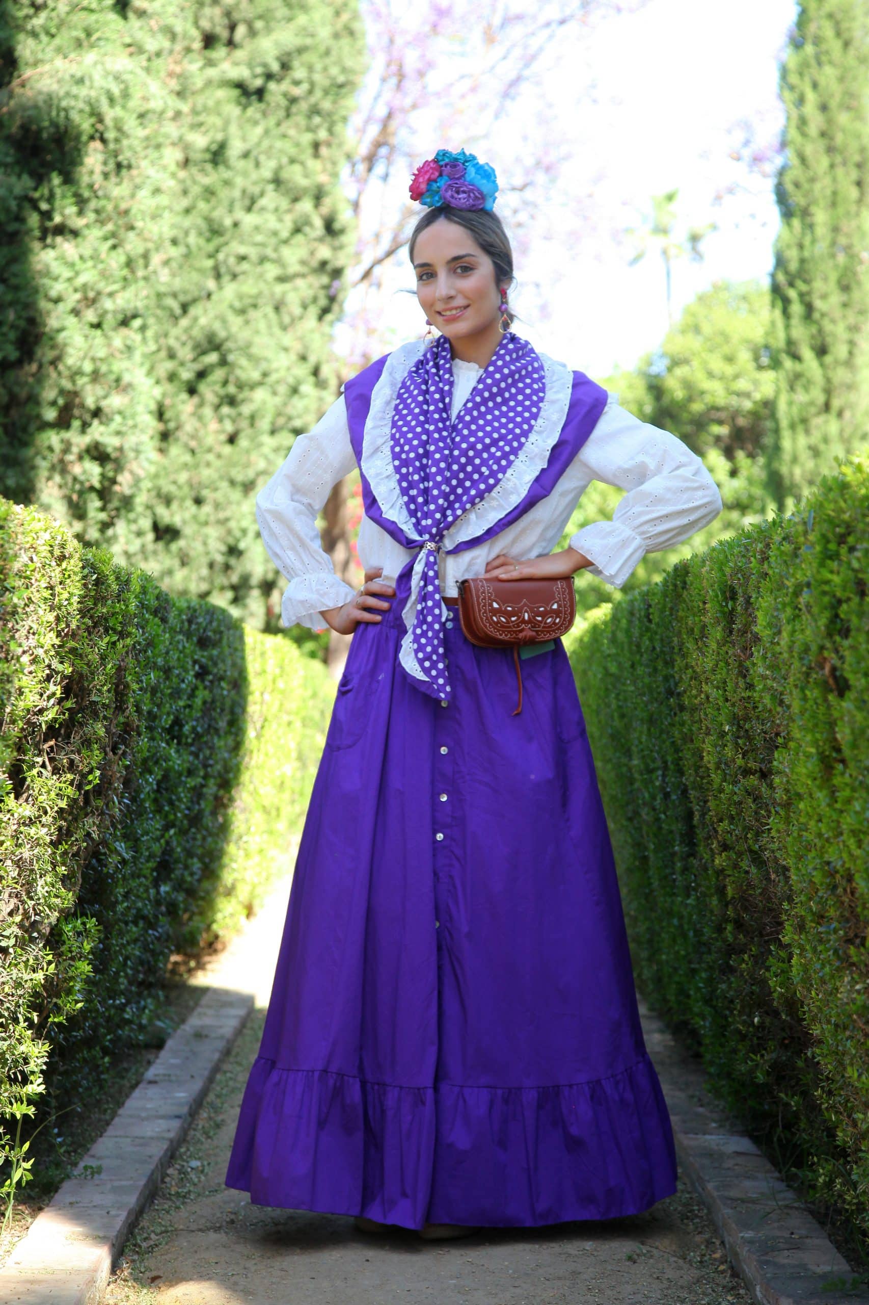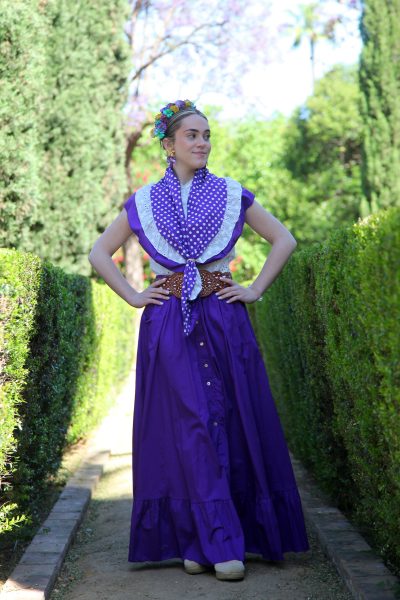 Falda larga morada y cintura elástica. Ideal para el camino y romerías.