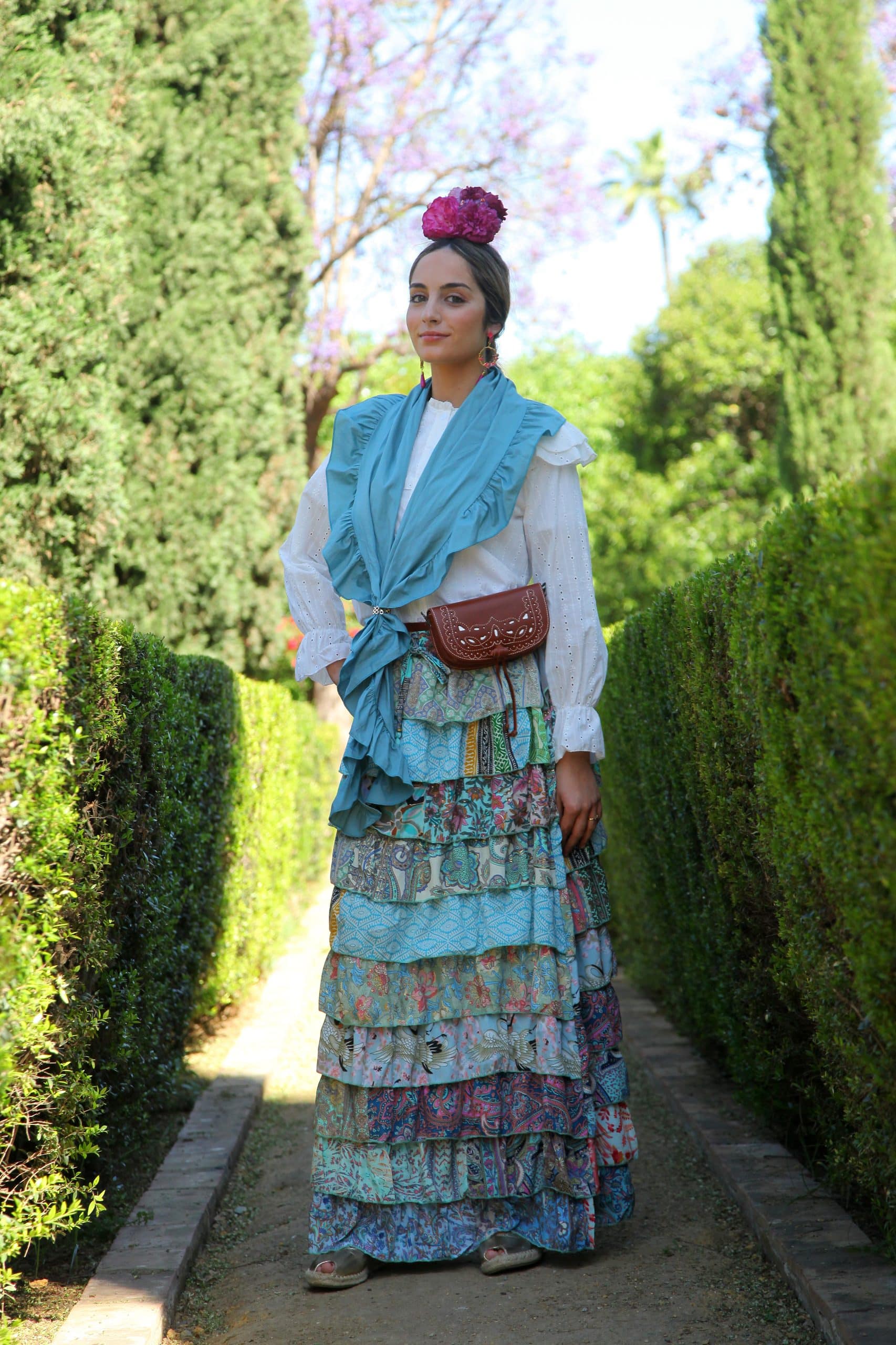 Falda larga multivolantes y cintura elástica. Ideal para el camino y romerías.
