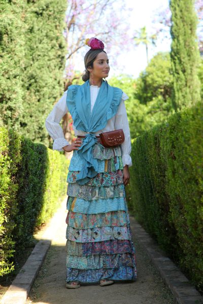 Conjunto falda rociera multivolantes con piquillo