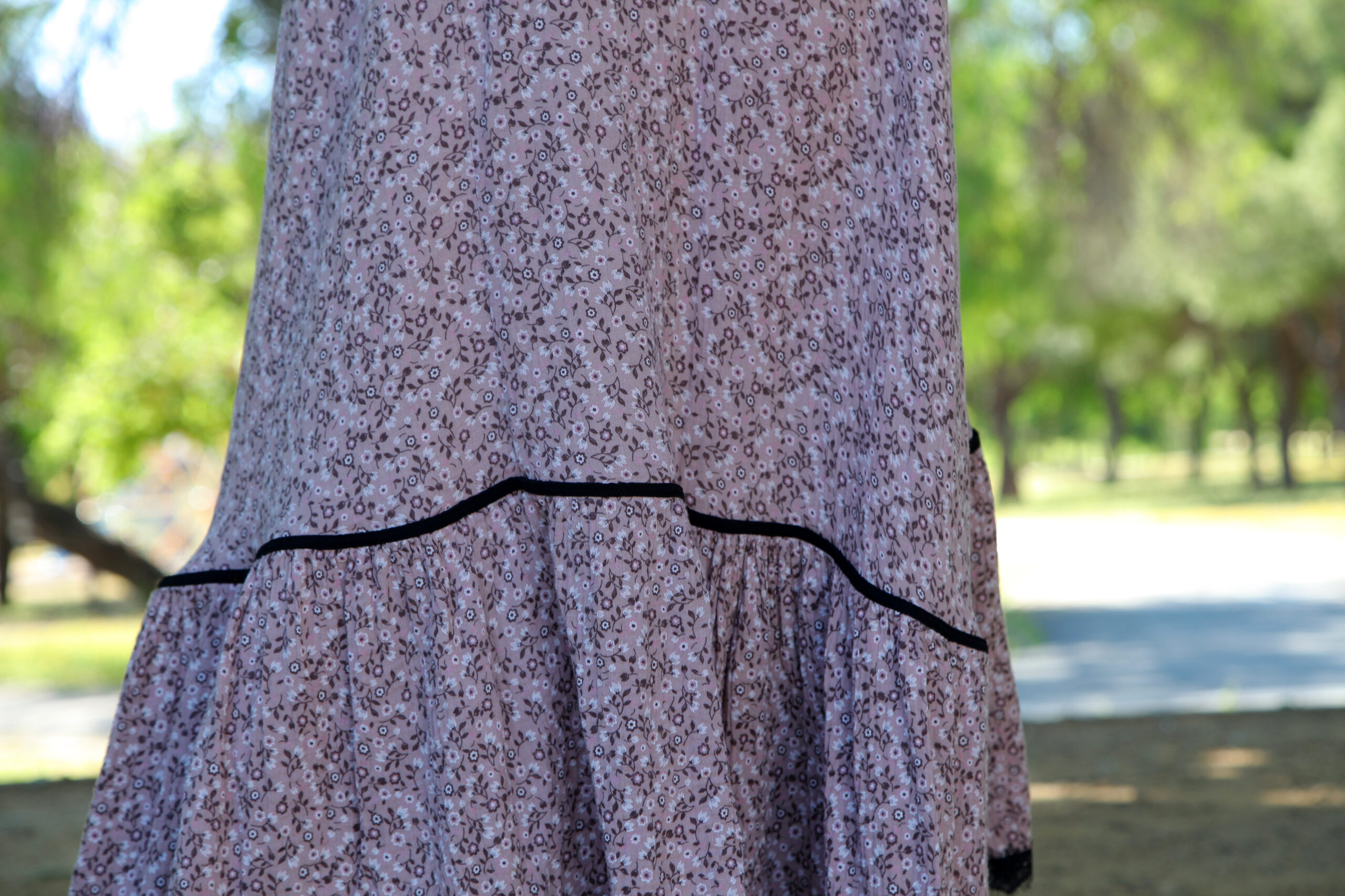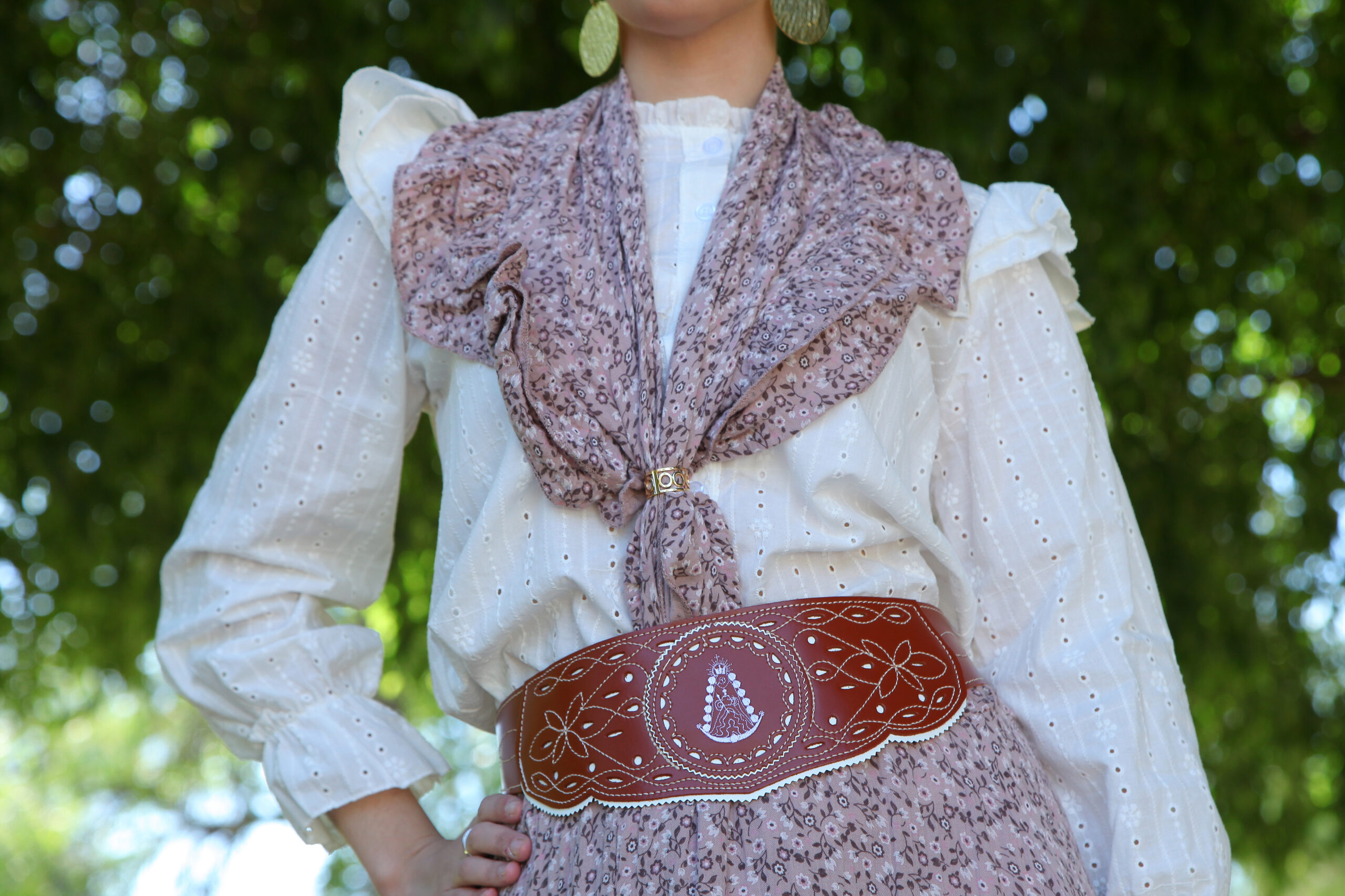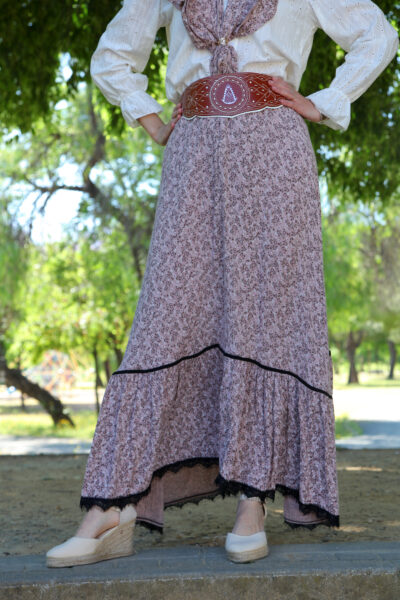 Falda larga con piquillo y cintura elástica y detalle de encaje. Ideal para el camino y romerías.