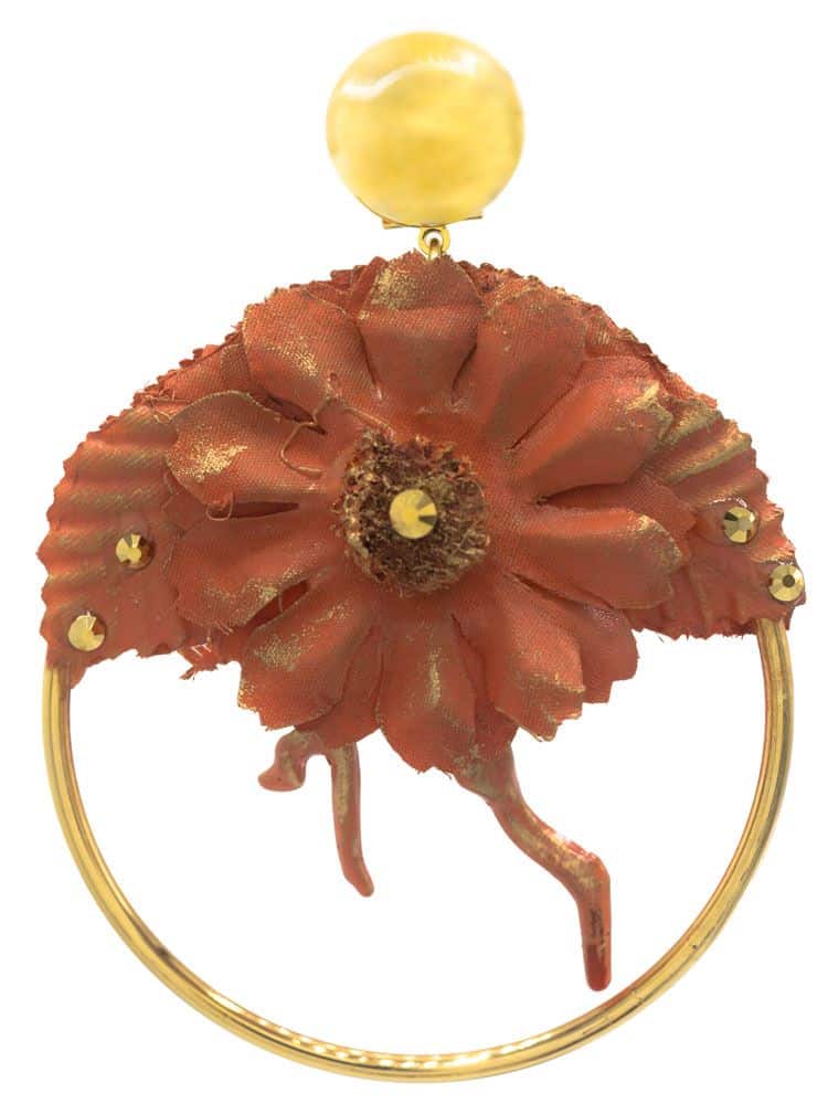 Pendiente de flamenca aro con detalle coral y flor de tela tono coral