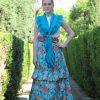 Falda larga de cuadros blancos y negros, con volante color teja y cintura elástica. Ideal para el camino y romerías.