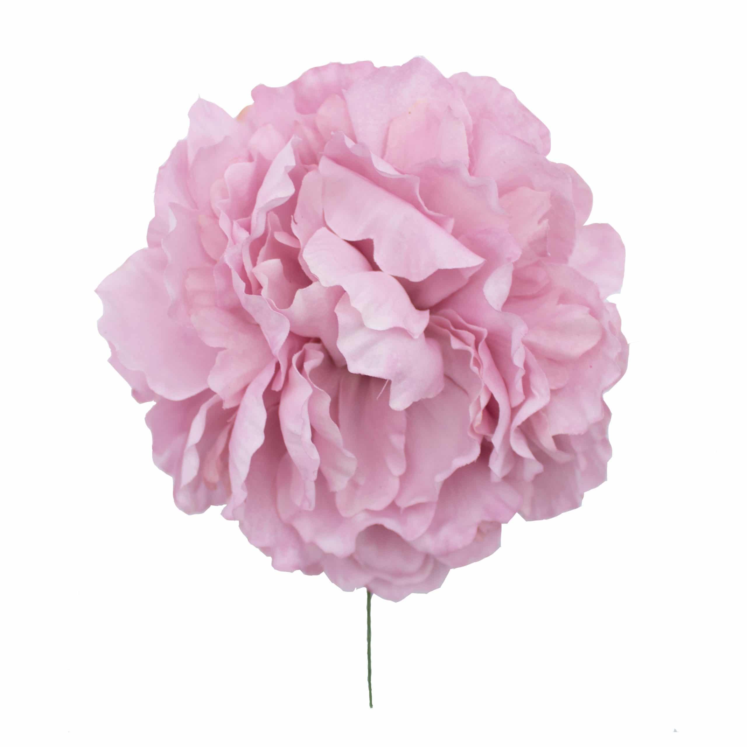 Flor de flamenca estilo peonia, de tamaño grande, con un diámetro aproximado de 14,5 cms y color Rosa Lila. Elaborada artesanalmente en Sevilla.
