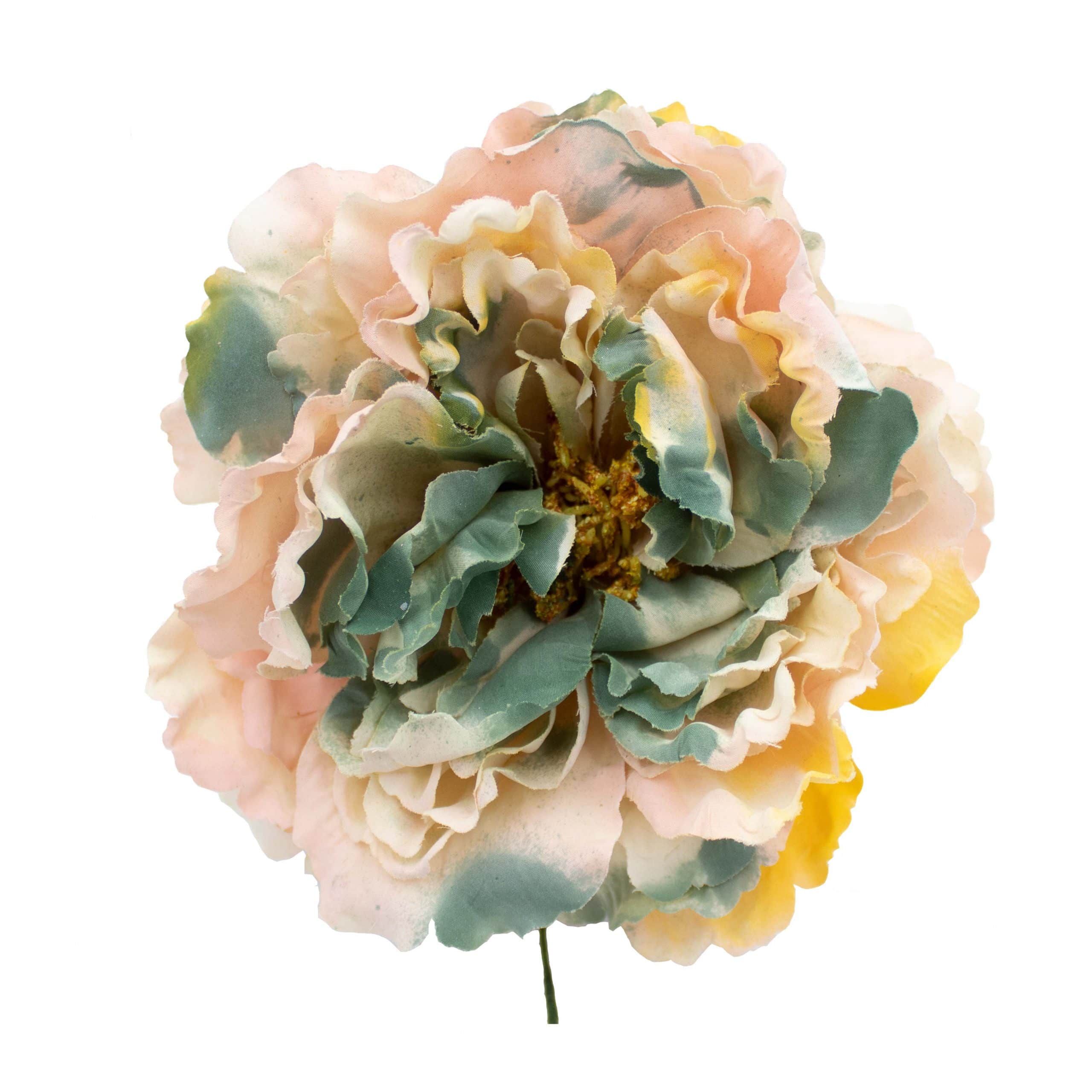 Flor de flamenca estilo peonia multicolor rosa, amarillo y verde