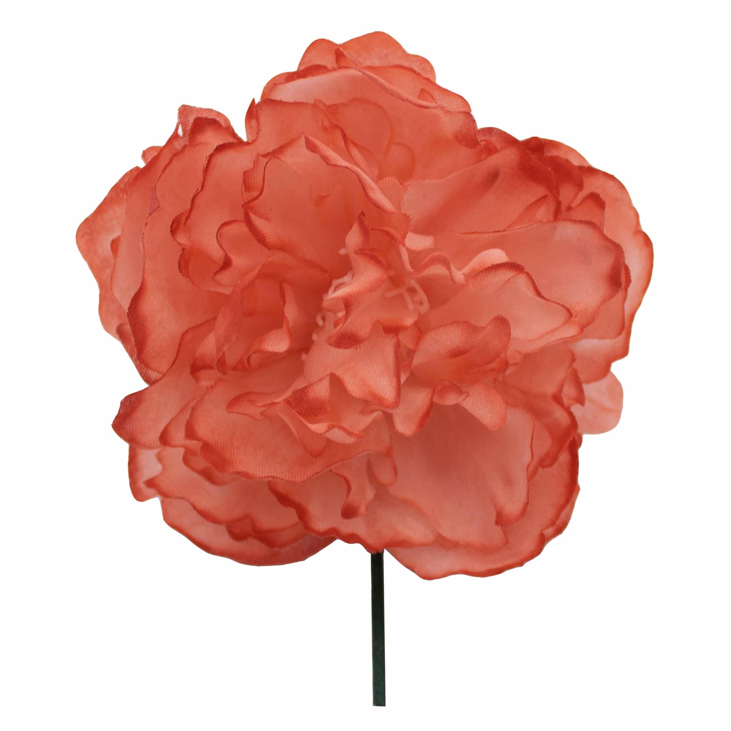 Flor de flamenca de tamaño mediano, con un diámetro aproximado de 9,5 cms y color Coral. Ideal para niñas o para crear tu propia combinación en ramillete. Elaborada artesanalmente en Sevilla.