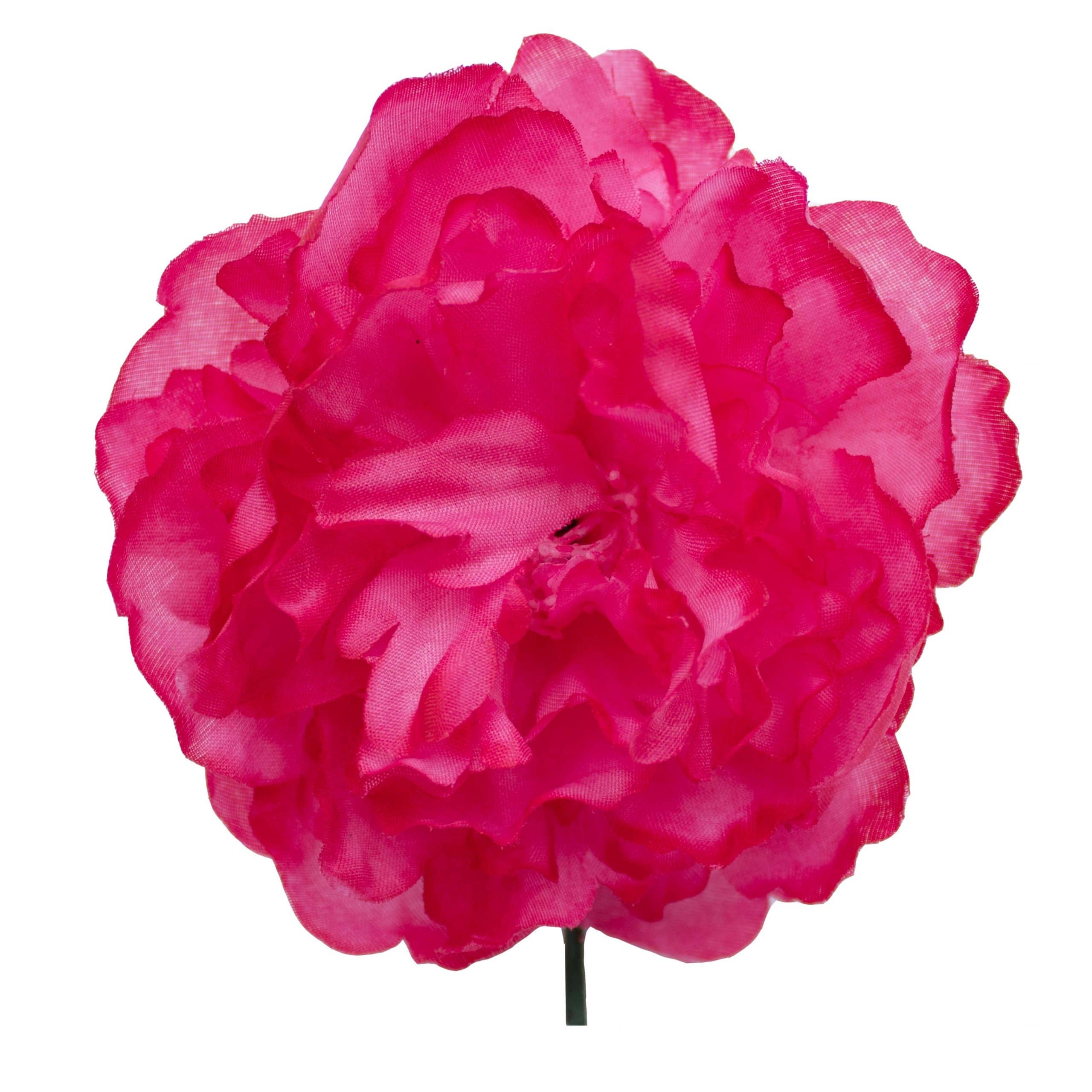Flor de flamenca de tamaño mediano, con un diámetro aproximado de 9,5 cms y color Fucsia. Ideal para niñas o para crear tu propia combinación en ramillete. Elaborada artesanalmente en Sevilla.