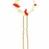 Horquilla dorada mate con enredadera de hojas pintada a mano en malva y rosa. Medidas aproximadas ancho x largo, 4 x 9,5 cm . Fabricado artesanalmente en la provincia de Sevilla.