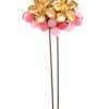 Horquilla dorada con dos flores y bolas de piedra Ágata en rosa, verde jabonoso y beige